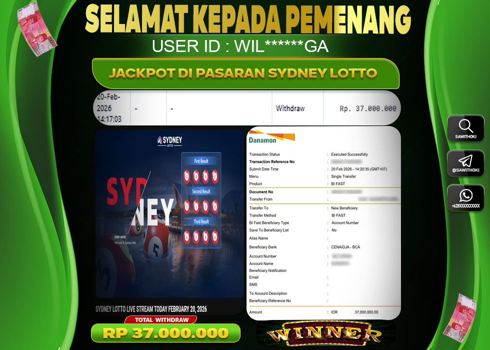 Bukti Jackpot Togel Online SAWITHOKI Jumat 20 February 2026 – SAWITHOKI adalah bo online terpercaya. Berikut ini kami berikan info bukti jackpot member SAWITHOKI yang sudah kami bayar lunas dalam permainan Togel Online.