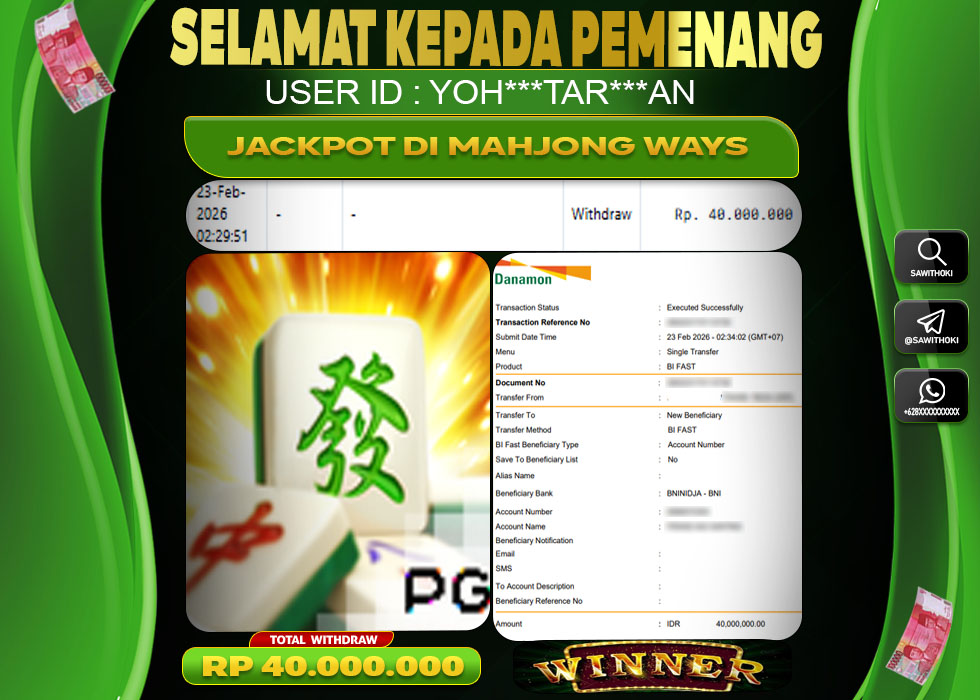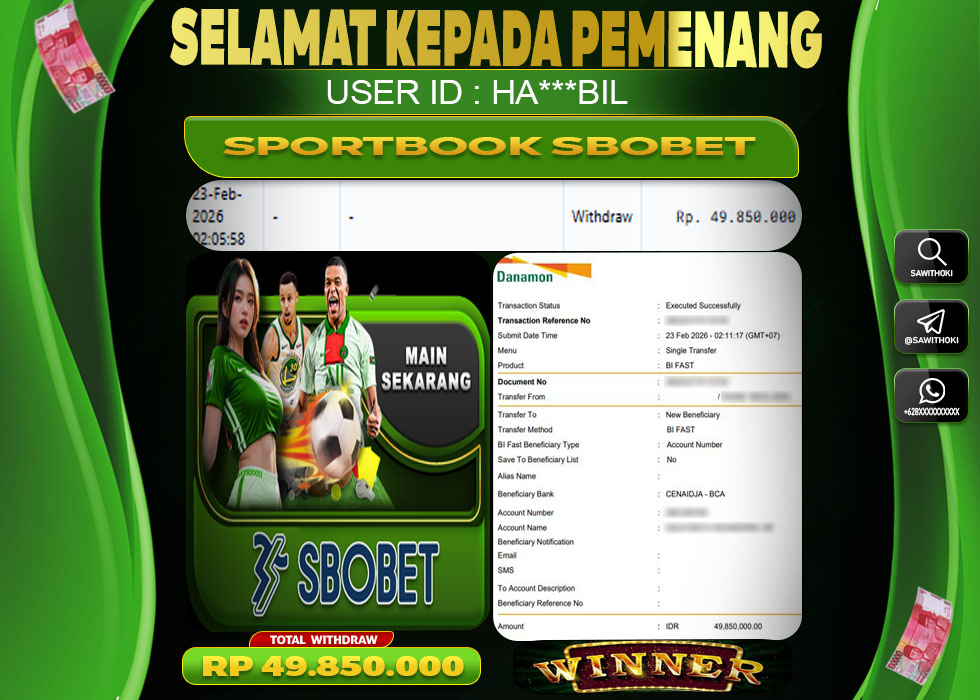 BUKTI Jackpot Online SAWITHOKI Senin 23 February 2026 – SAWITHOKI Adalah Situs SPORTBOOK Gacor Online Terpercaya. Berikut Kami Sajikan Informasi Bukti Jackpot Member SAWITHOKI Yang Telah Dibayar LUNAS Dalam Permainan SPORTBOOK Online.