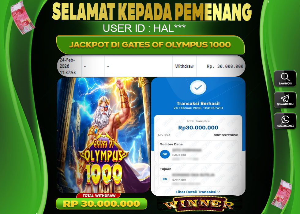 Bukti Jackpot Slot Online SAWITHOKI Selasa 24 February 2026 – SAWITHOKI adalah bo online terpercaya. Berikut ini kami berikan info bukti jackpot member SAWITHOKI yang sudah kami bayar lunas dalam permainan slot online.