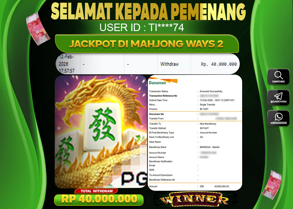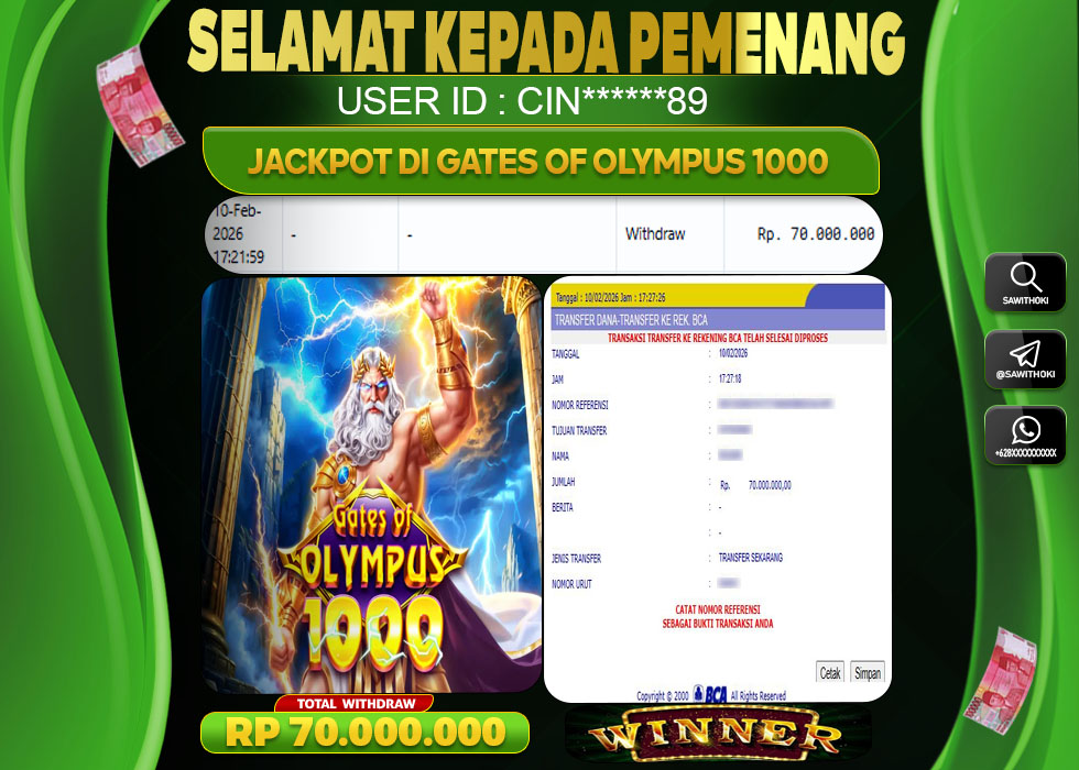 Bukti Jackpot Slot Online SAWITHOKI Selasa 10 February 2026 – SAWITHOKI adalah bo online terpercaya. Berikut ini kami berikan info bukti jackpot member SAWITHOKI yang sudah kami bayar lunas dalam permainan slot online.