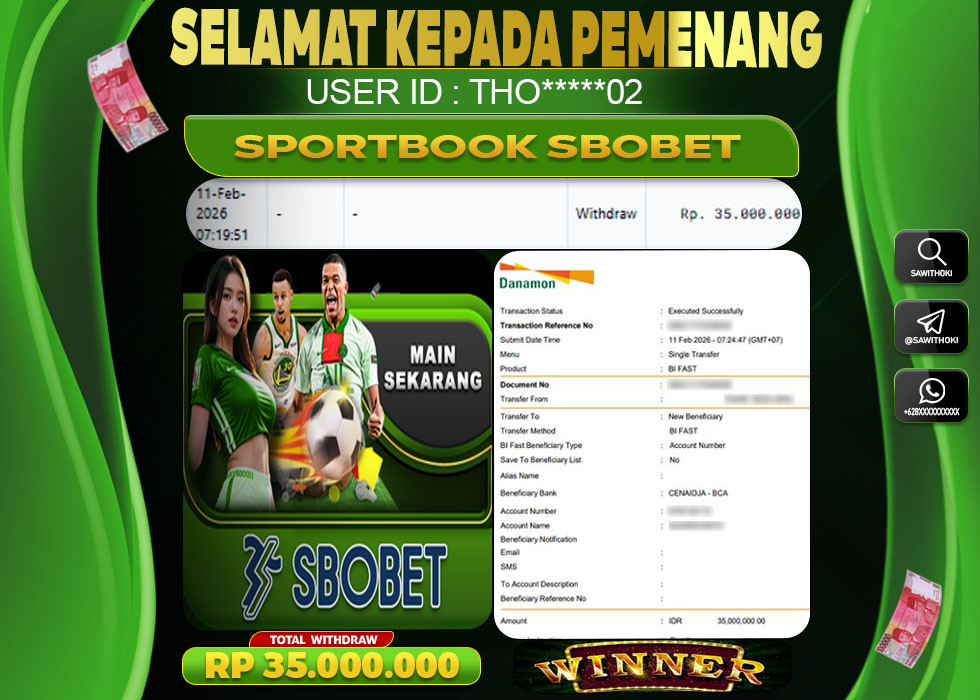BUKTI Jackpot Online SAWITHOKI Rabu 11 February 2026 – SAWITHOKI Adalah Situs SPORTBOOK Gacor Online Terpercaya. Berikut Kami Sajikan Informasi Bukti Jackpot Member SAWITHOKI Yang Telah Dibayar LUNAS Dalam Permainan SPORTBOOK Online.