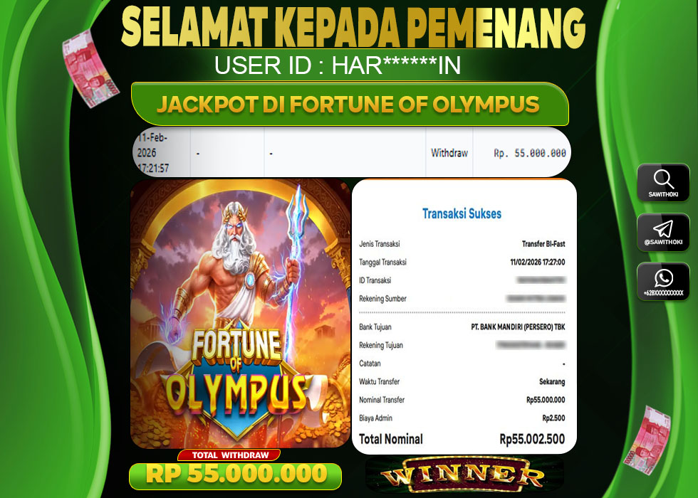 Bukti Jackpot Slot Online SAWITHOKI Rabu 11 February 2026 55.000.000 - LUNAS