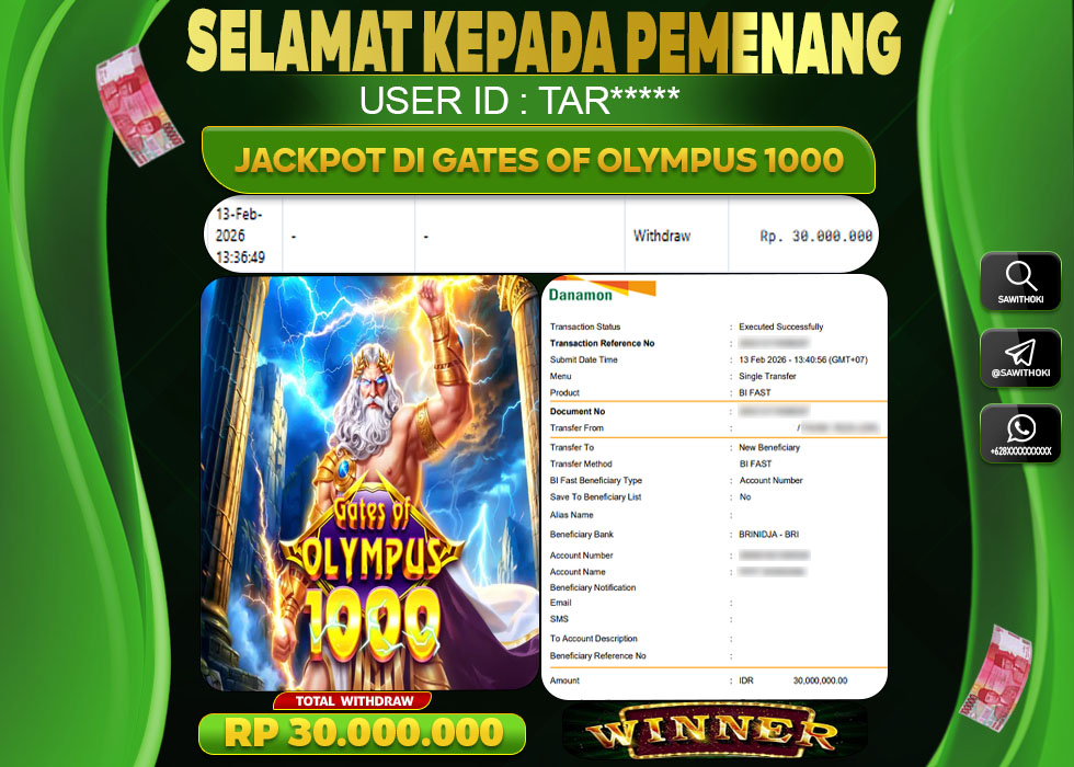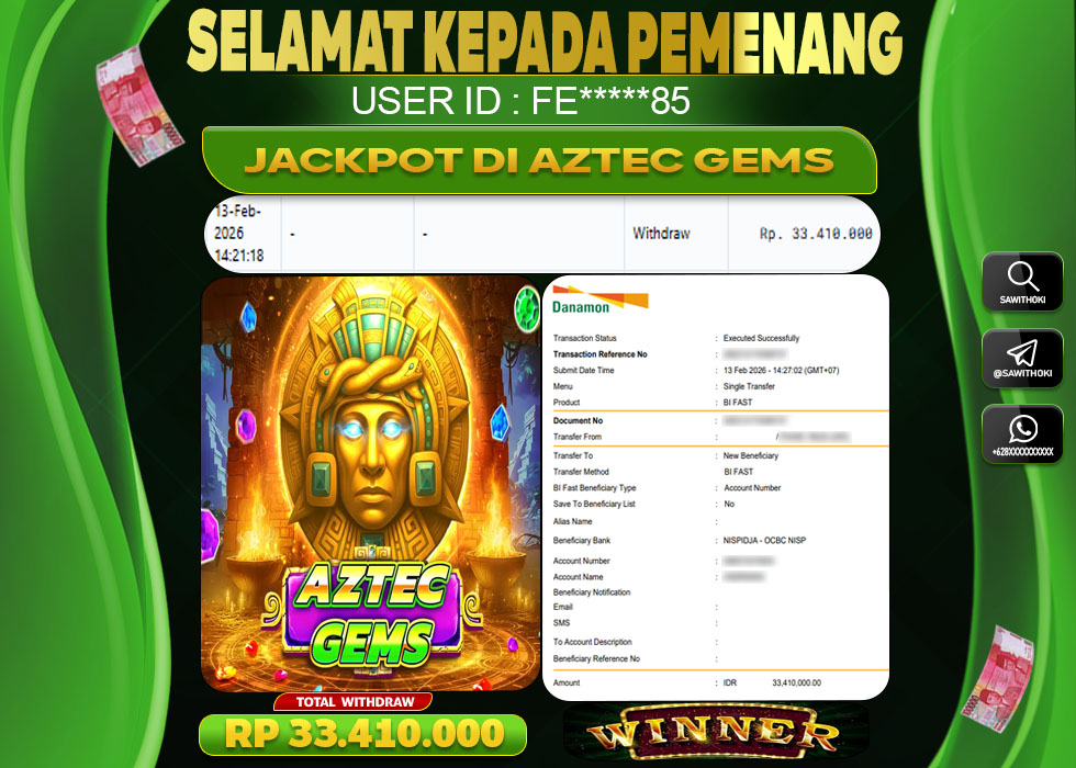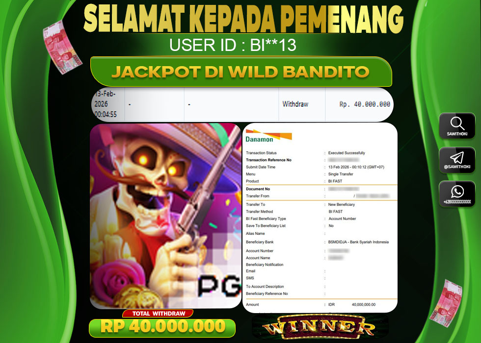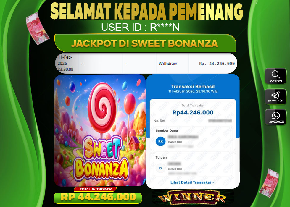 Bukti Jackpot Slot Online SAWITHOKI Jumat 13 February 2026 – SAWITHOKI adalah bo online terpercaya. Berikut ini kami berikan info bukti jackpot member SAWITHOKI yang sudah kami bayar lunas dalam permainan slot online.