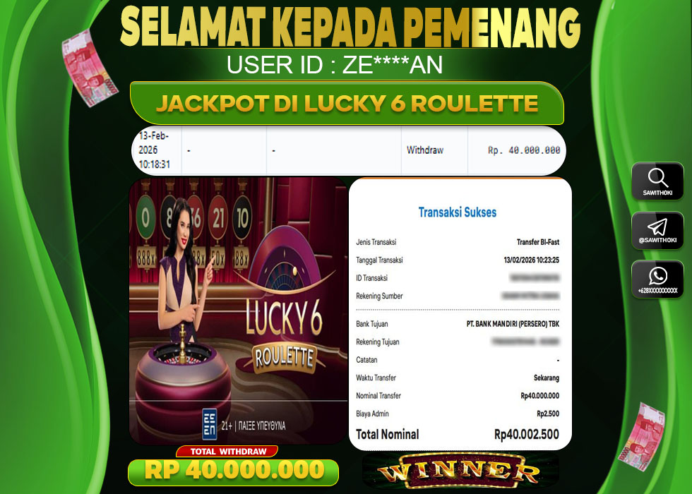 Bukti Jackpot Live Casino Online SAWITHOKI Jumat 13 February 2026 – SAWITHOKIadalah bo online terpercaya. Berikut ini kami berikan info bukti jackpot member SAWITHOKI yang sudah kami bayar lunas dalam permainan live casino online.
