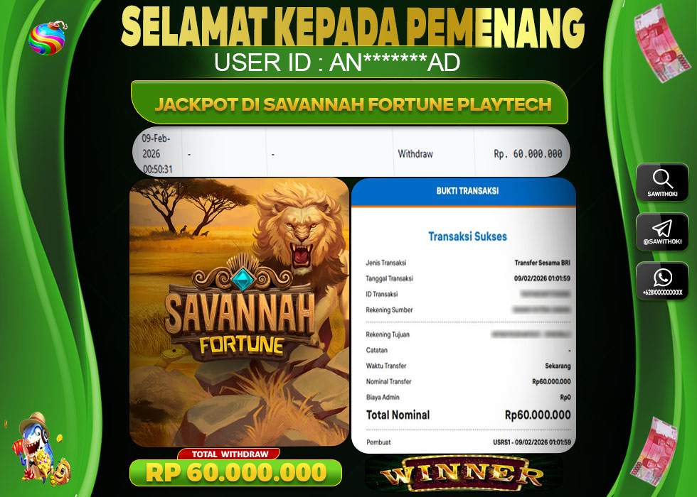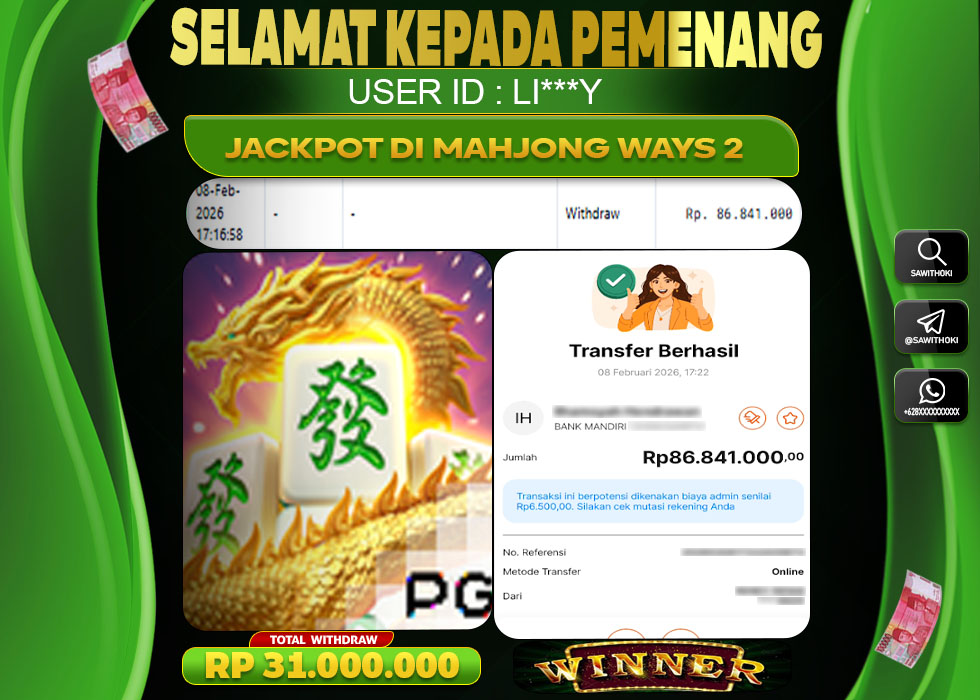 Bukti Jackpot Slot Online SAWITOKI Minggu 08 February 2026 – SAWITOKI adalah bo online terpercaya. Berikut ini kami berikan info bukti jackpot member SAWITOKI yang sudah kami bayar lunas dalam permainan slot online.