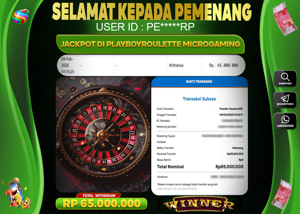 Bukti Jackpot SAWITHOKI LIVECASINO Online Senin 09 February 2026 65.000.000 - LUNAS