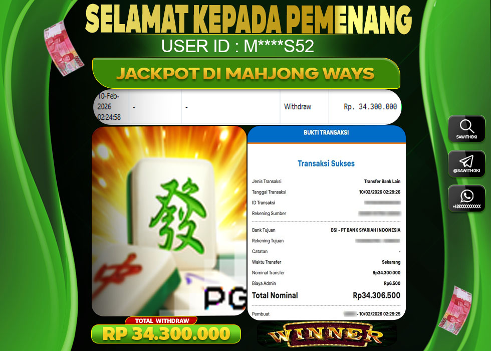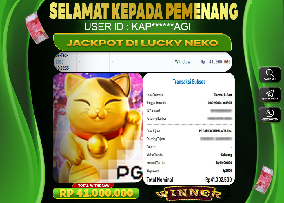 Bukti Jackpot Slot Online SAWITOKI Selasa 10 February 2026 – SAWITOKI adalah bo online terpercaya. Berikut ini kami berikan info bukti jackpot member SAWITOKI yang sudah kami bayar lunas dalam permainan slot online.