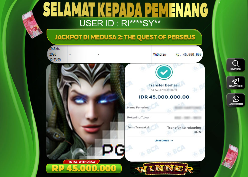 Bukti Jackpot Slot Online SAWITOKI Senin 09 February 2026 45.000.000 - LUNAS