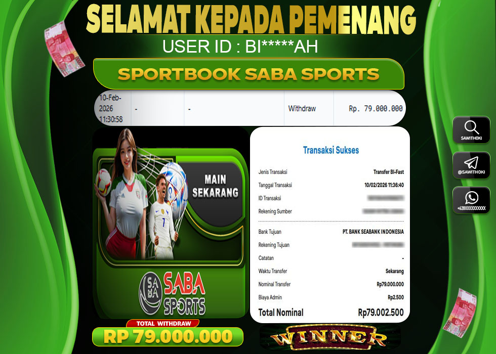 BUKTI Jackpot Online SAWITHOKI Selasa 10 February 2026 – SAWITHOKI Adalah Situs SPORTBOOK Gacor Online Terpercaya. Berikut Kami Sajikan Informasi Bukti Jackpot Member SAWITHOKI Yang Telah Dibayar LUNAS Dalam Permainan SPORTBOOK Online.