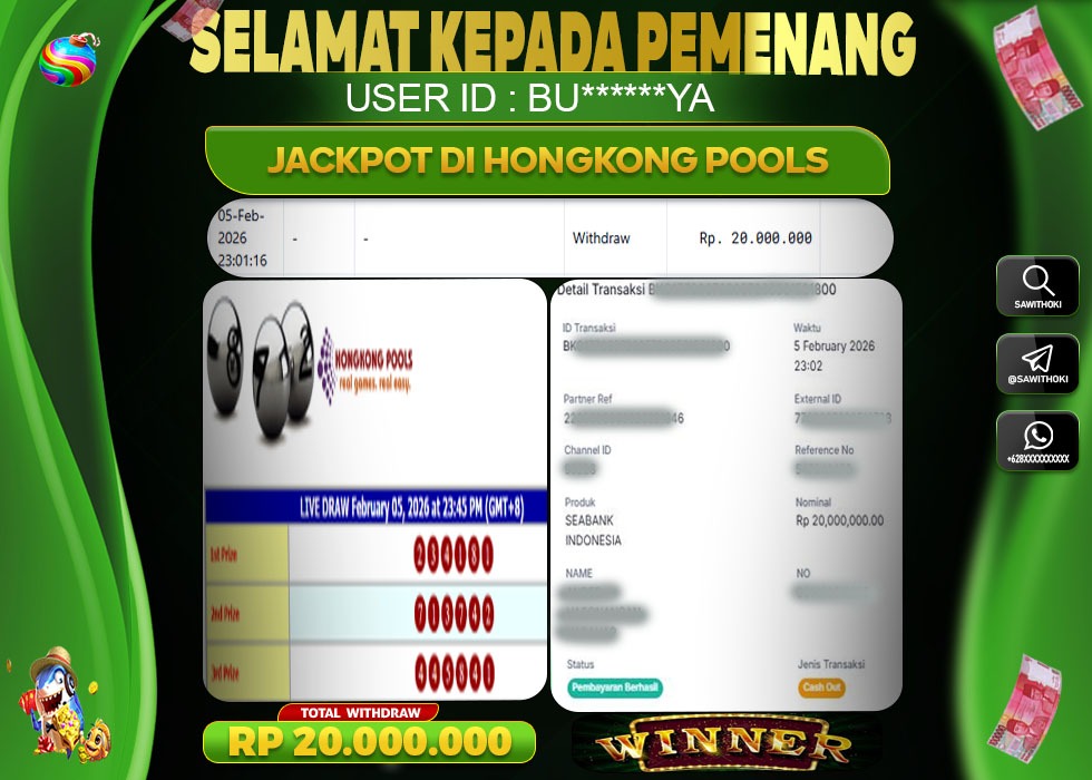Bukti Jackpot TOGEL GACOR Online SAWITHOKI SAWITHOKI Kamis 05 Febuary 2026 20.000.000 - LUNAS