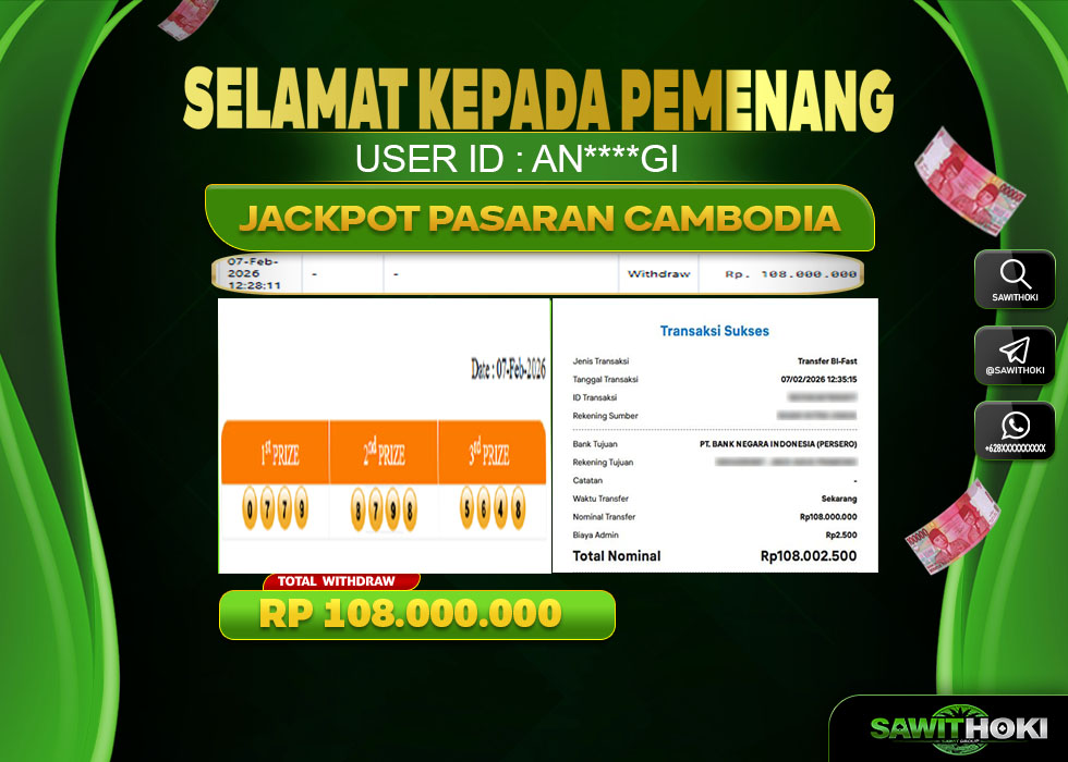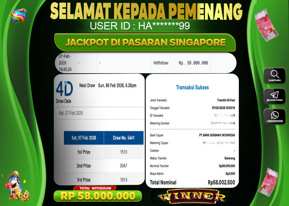Bukti Jackpot Togel Online SAWITOKI Sabtu 07 February 2026 – SAWITOKI adalah bo online terpercaya. Berikut ini kami berikan info bukti jackpot member SAWITOKI yang sudah kami bayar lunas dalam permainan Togel Online.