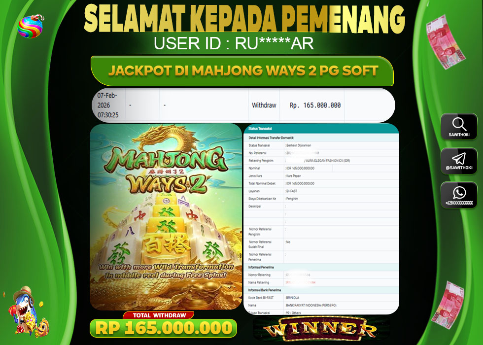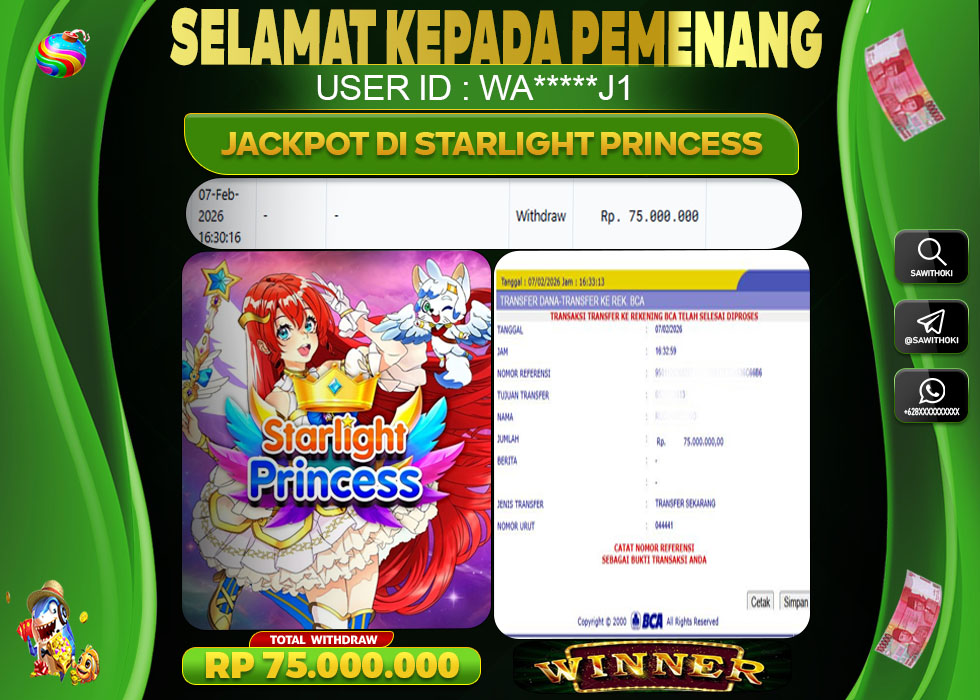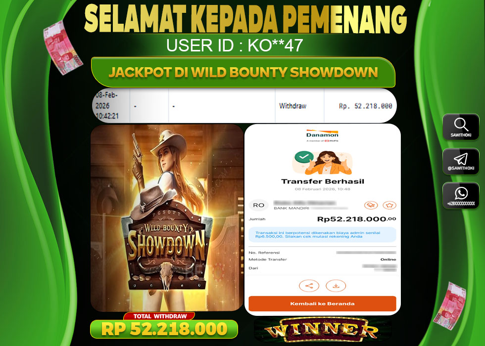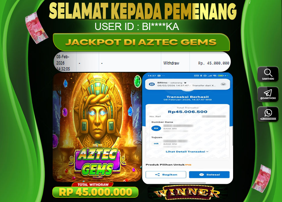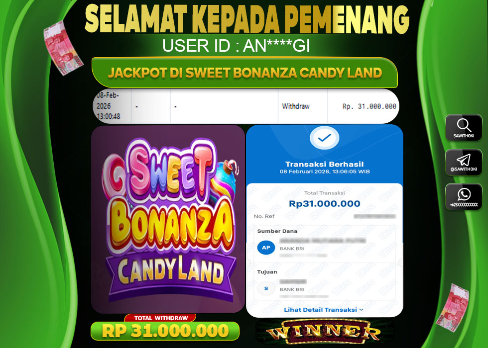 Bukti Jackpot Slot Online SAWITOKI Minggu 08 February 2026 – SAWITOKI adalah bo online terpercaya. Berikut ini kami berikan info bukti jackpot member SAWITOKI yang sudah kami bayar lunas dalam permainan slot online.