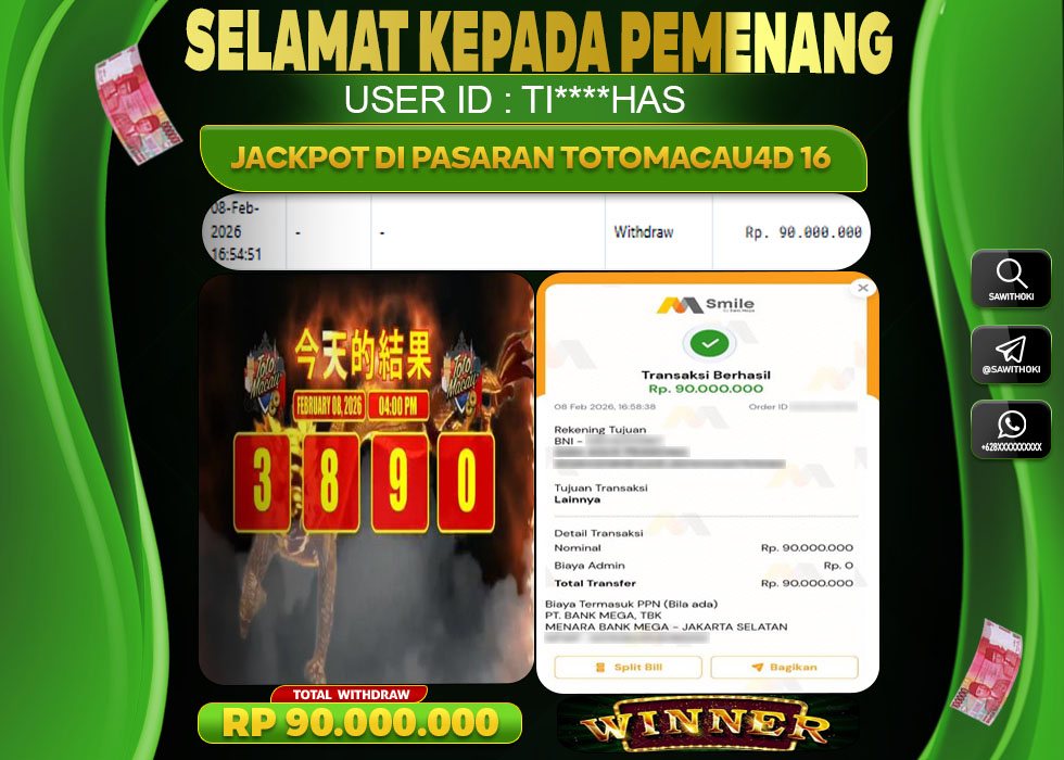 Bukti Jackpot Togel Online SAWITOKI Minggu 08 February 2026 – SAWITOKI adalah bo online terpercaya. Berikut ini kami berikan info bukti jackpot member SAWITOKI yang sudah kami bayar lunas dalam permainan Togel Online.