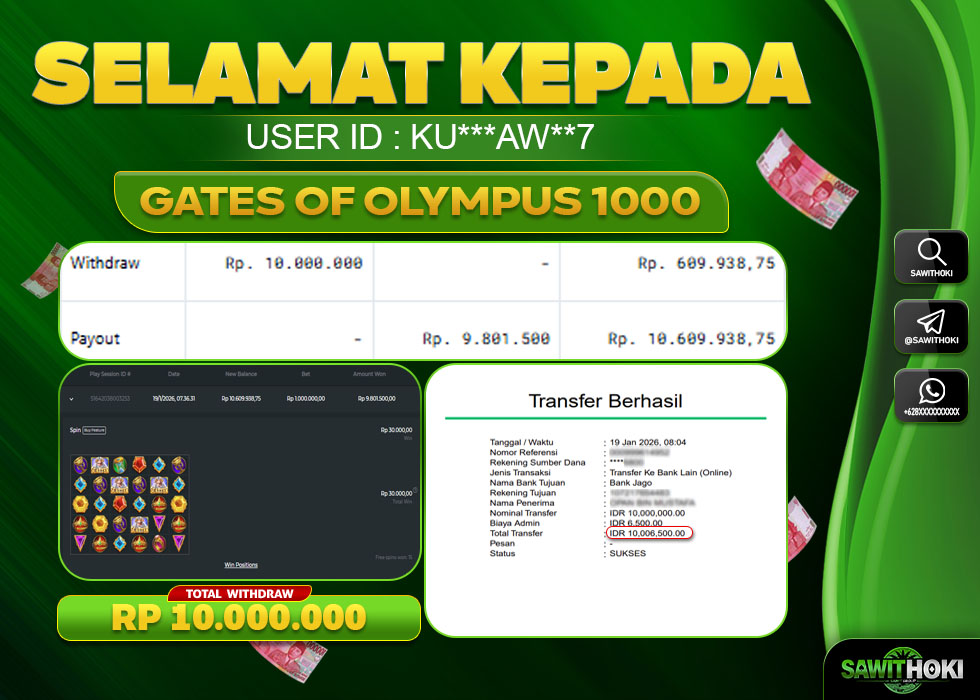 Bukti jackpot bukan untuk pamer, tapi sebagai bukti kredibilitas. Di SAWITHOKI, kamu bisa menilai langsung: apakah jackpot benar-benar dibayar, apakah proses transaksi cepat, dan apakah sistem slot gacor berjalan stabil.